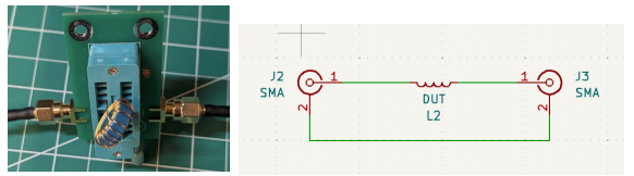 \[L_{\rm DUT} = \frac{1}{C_{\rm ref}(2 \pi f_{\rm res} )^2}\]Note that you do not need to subtract the inductance of the test fixture when using this method – its inductance doesn’t become part of the resonating circuit.