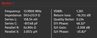 This frequency is the resonance frequency of the tank circuit formed by the inductor under test and the reference capacitor. The exact capacitance of the reference capacitor can be found by measuring the equivalent series capacitance of the capacitor when placed in the ZIF socket using the NanoVNA software. It should be higher than the listed value of the capacitor due to the ZIF socket’s parasitic capacitance.