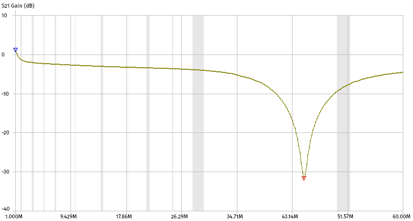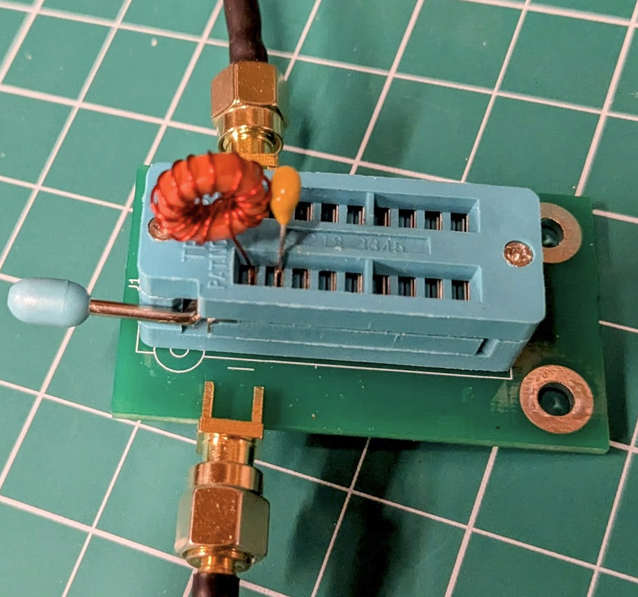 It’s also important to note that the ZIF socket has an equivalent series capacitance of roughly 4 pF (again measured using a NanoVNA). The resonance frequency between the ZIF socket capacitance and the inductor under test approaches HF frequencies for high inductance values, which gives false readings using this method. Based on testing, I’ve concluded that measuring inductor values above 2 uH is unreliable using the VNA method and this particular test fixture. For such inductors I use the resonance method.