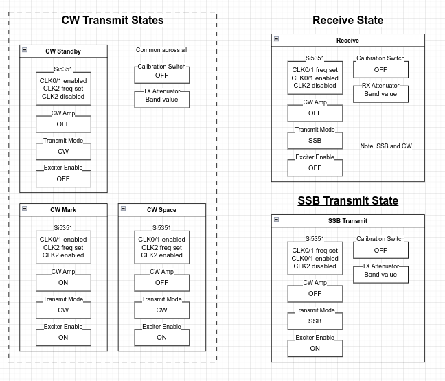 Then, I’m documenting various state machines that show how the radio transitions between states as various buttons are pressed or other events happen. I’m drawing them in little state diagrams like this.